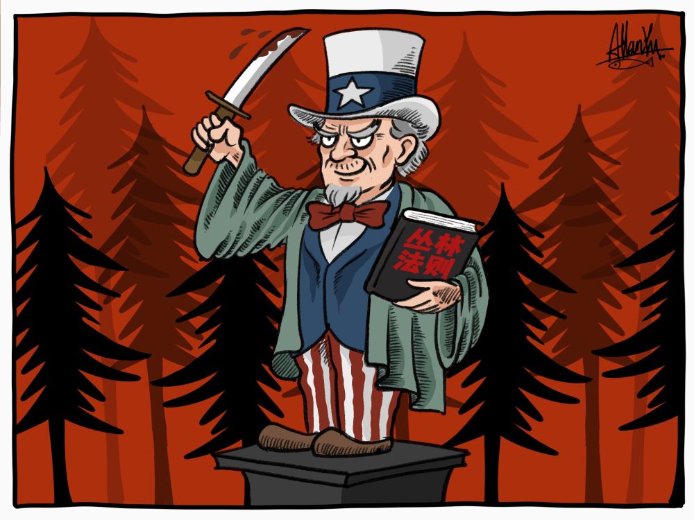 事實(shí)真是如此嗎?二戰(zhàn)后,美國(guó)主導(dǎo)建立了所謂“自由主義國(guó)際秩序”,并在這一“秩序”下包裝推出許多維護(hù)美國(guó)利益的“規(guī)則”。美國(guó)通過(guò)北約和海外軍事基地構(gòu)建全球軍事網(wǎng)絡(luò),假“維護(hù)和平”“傳播民主”之名實(shí)施武力侵略或政治干涉;靠美元霸權(quán)薅全世界羊毛;不斷將自身利益凌駕于全球秩序之上……美國(guó)匹茲堡大學(xué)客座法學(xué)教授丹尼爾·科瓦利克指出,所謂“秩序”“規(guī)則”等旗號(hào),不過(guò)是美國(guó)用來(lái)?yè)寠Z和維護(hù)其霸權(quán)利益的幌子,華盛頓實(shí)際上干的還是“殖民掠奪的老本行”。