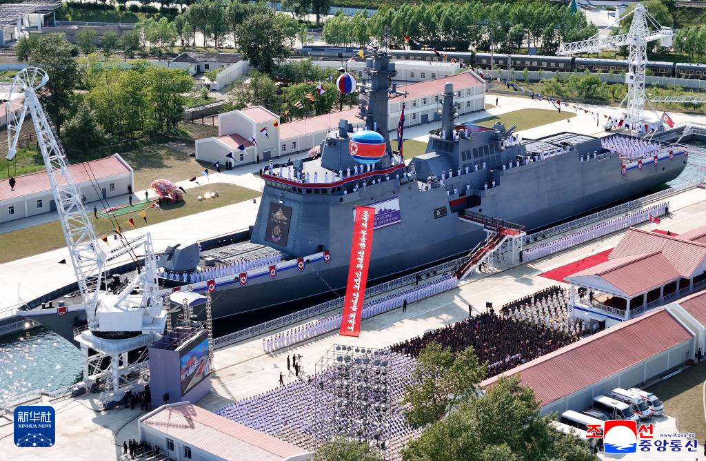 這是朝中社發(fā)布的朝鮮“崔賢”級(jí)二號(hào)艦下水儀式現(xiàn)場(chǎng)畫面。新華社/朝中社