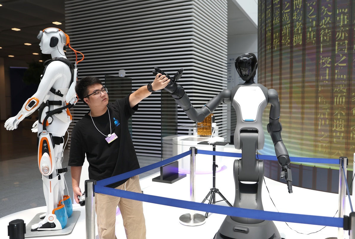 6月23日,工作人員調(diào)試機器人。中國日報記者 鄒紅 攝