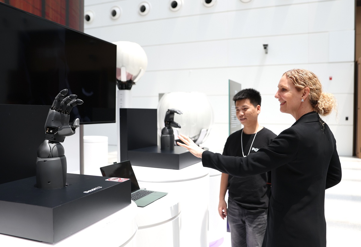 6月23日,嘉賓體驗靈巧手視覺遙操互動。中國日報記者 鄒紅 攝