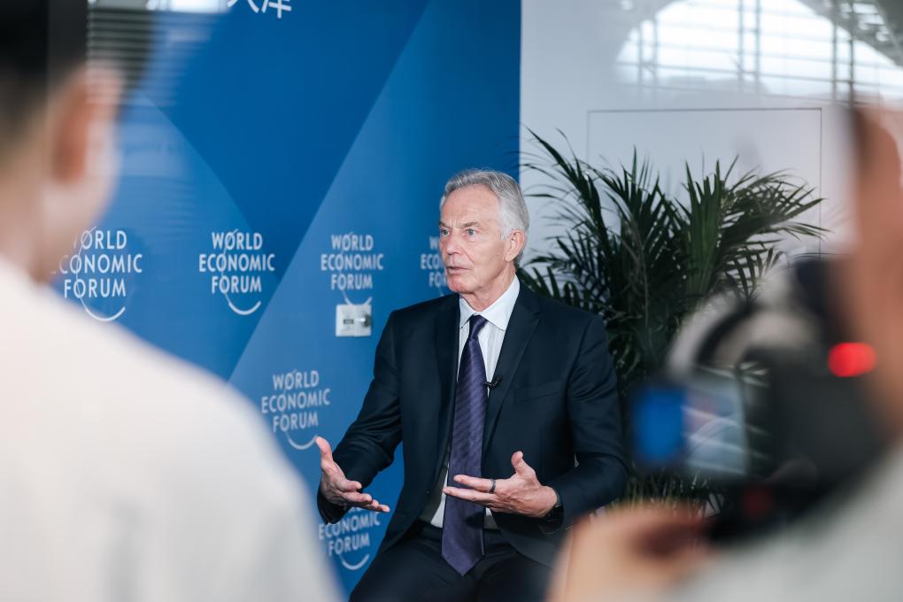 6月24日,英國(guó)前首相托尼·布萊爾在參加世界經(jīng)濟(jì)論壇2025年新領(lǐng)軍者年會(huì)(第十六屆夏季達(dá)沃斯論壇)期間接受采訪。新華社發(fā)