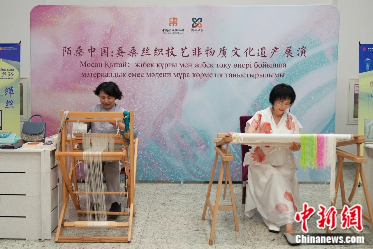 當地時間2025年6月16日,哈薩克斯坦“中國旅游年”開幕式在位于阿斯塔納的哈薩克斯坦國家博物館舉行。圖為手工藝者在非遺體驗活動中演示緙絲、臺繡等傳統(tǒng)技藝。 中新社記者 單璐 攝