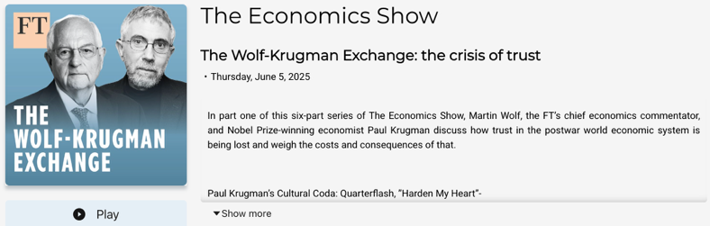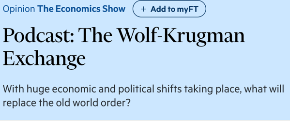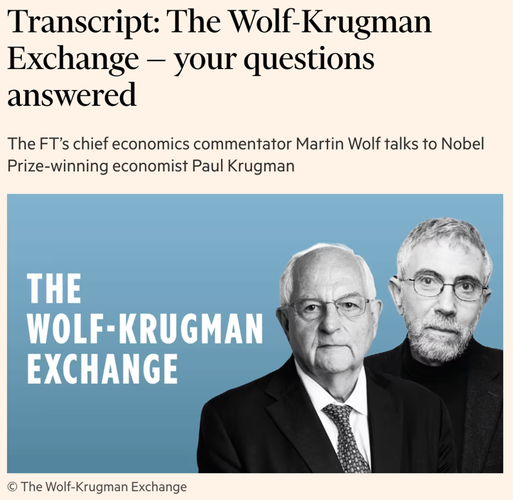 △《金融時(shí)報(bào)》在對(duì)完整六期訪談的總結(jié)報(bào)道中,深入總結(jié)了克魯格曼與沃爾夫兩人對(duì)當(dāng)前制度退化、全球治理、選民心理的批評(píng)視角