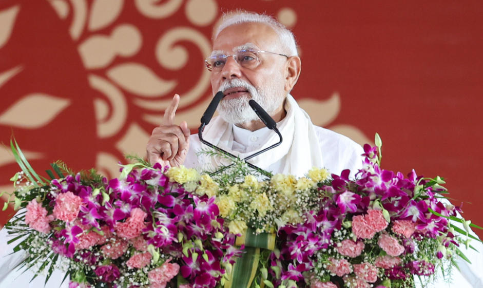 印度總理莫迪8月2日在印度北方邦城市瓦拉納西的一個(gè)集會上發(fā)表講話。(圖片來自莫迪辦公室網(wǎng)站)