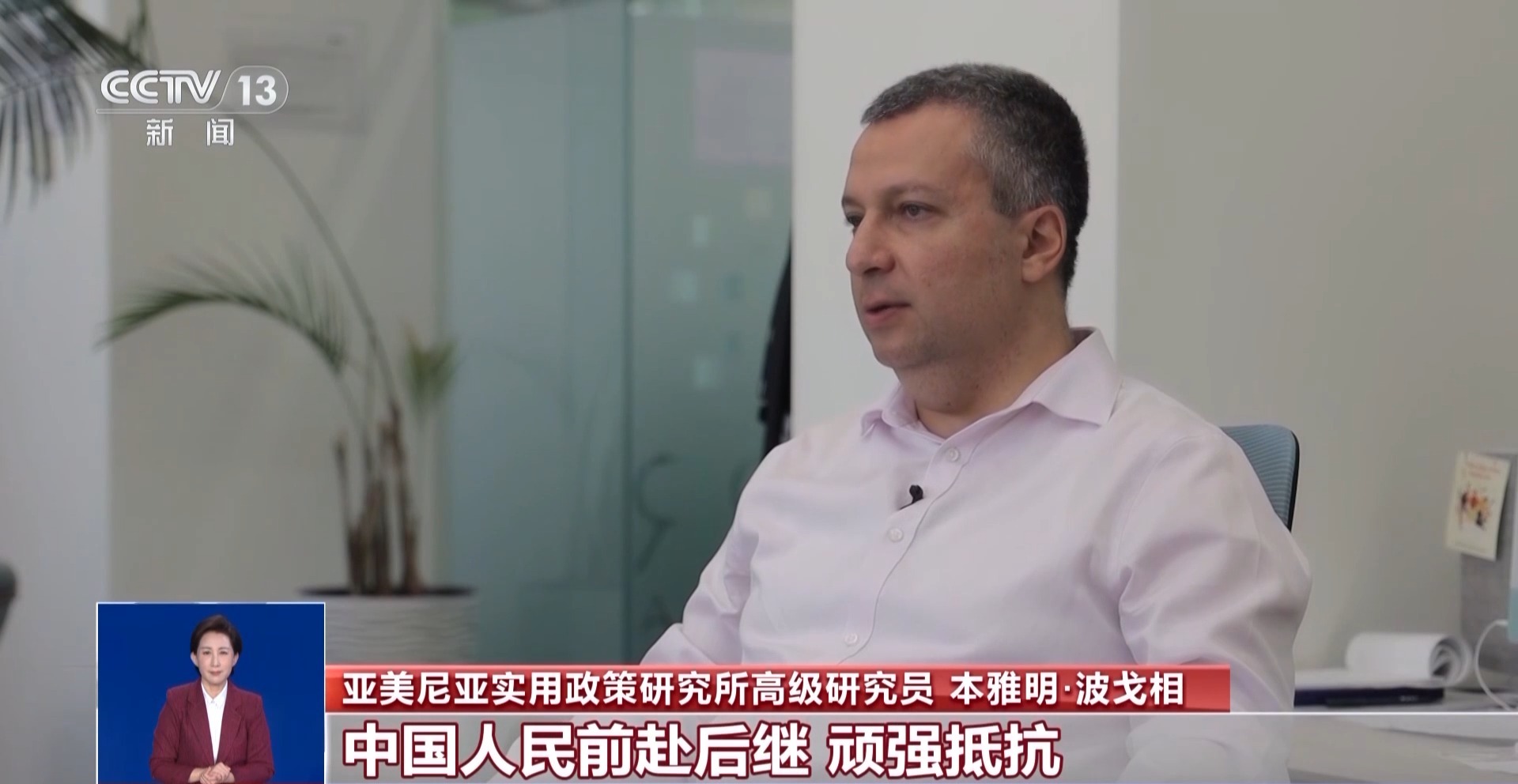亞美尼亞實(shí)用政策研究所高級(jí)研究員 本雅明·波戈相:自20世紀(jì)30年代初起,中國(guó)就展開了艱苦卓絕的抗日戰(zhàn)爭(zhēng)。中國(guó)人民前赴后繼、頑強(qiáng)抵抗、付出巨大犧牲,為人類最終戰(zhàn)勝法西斯勢(shì)力作出不可磨滅的貢獻(xiàn)。我們應(yīng)當(dāng)永遠(yuǎn)銘記中國(guó)和反法西斯同盟國(guó)取得的偉大勝利,歷史不僅需要被銘記,更需要從中汲取教訓(xùn)。