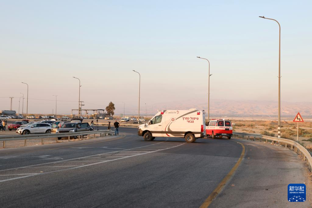 9月18日,警察封鎖約旦河西岸地區(qū)與約旦交界處艾倫比橋陸路口岸附近的襲擊現(xiàn)場。新華社發(fā)(賈馬爾·阿瓦德攝)