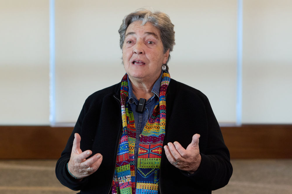 9月25日,烏拉圭知名社會活動家、記者露西·加里多在烏拉圭首都蒙得維的亞接受新華社記者采訪。新華社記者 孟鼎博 攝