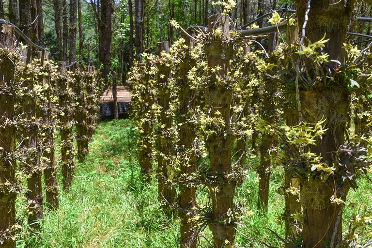 圖為墨脫縣格林村石斛種植基地里立體栽樁的石斛。記者 劉楓 攝