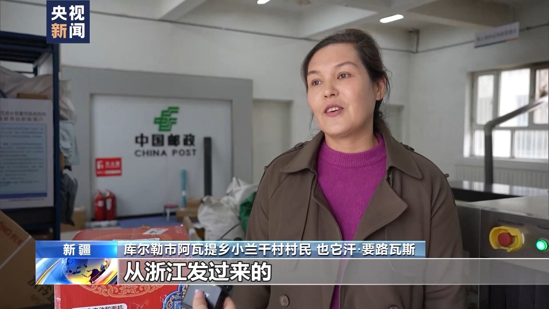 庫(kù)爾勒市阿瓦提鄉(xiāng)小蘭干村村民 也它汗·要路瓦斯:我在網(wǎng)上買(mǎi)了一個(gè)和面機(jī),從浙江發(fā)過(guò)來(lái)的。過(guò)去拿快遞只能到鄉(xiāng)里,現(xiàn)在直接到家門(mén)口,當(dāng)天我就拿到手。