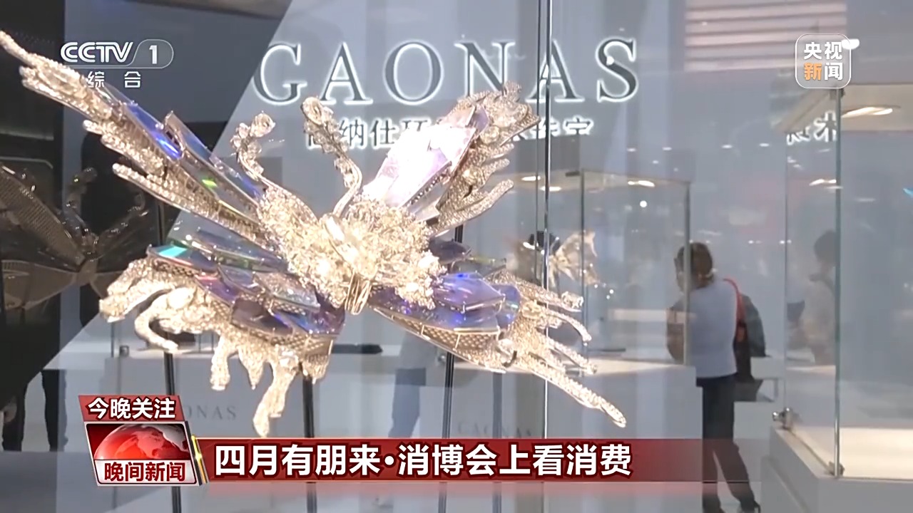 在這個(gè)珠寶藝術(shù)品的展臺(tái),8只由AI設(shè)計(jì)的蝴蝶翩翩起舞,為觀眾帶來(lái)了新奇的體驗(yàn),也展示了科技在珠寶設(shè)計(jì)中的無(wú)限可能。
