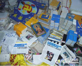 ▲徐祥蘭、王漢生印制的“法輪功”書籍及錄像帶