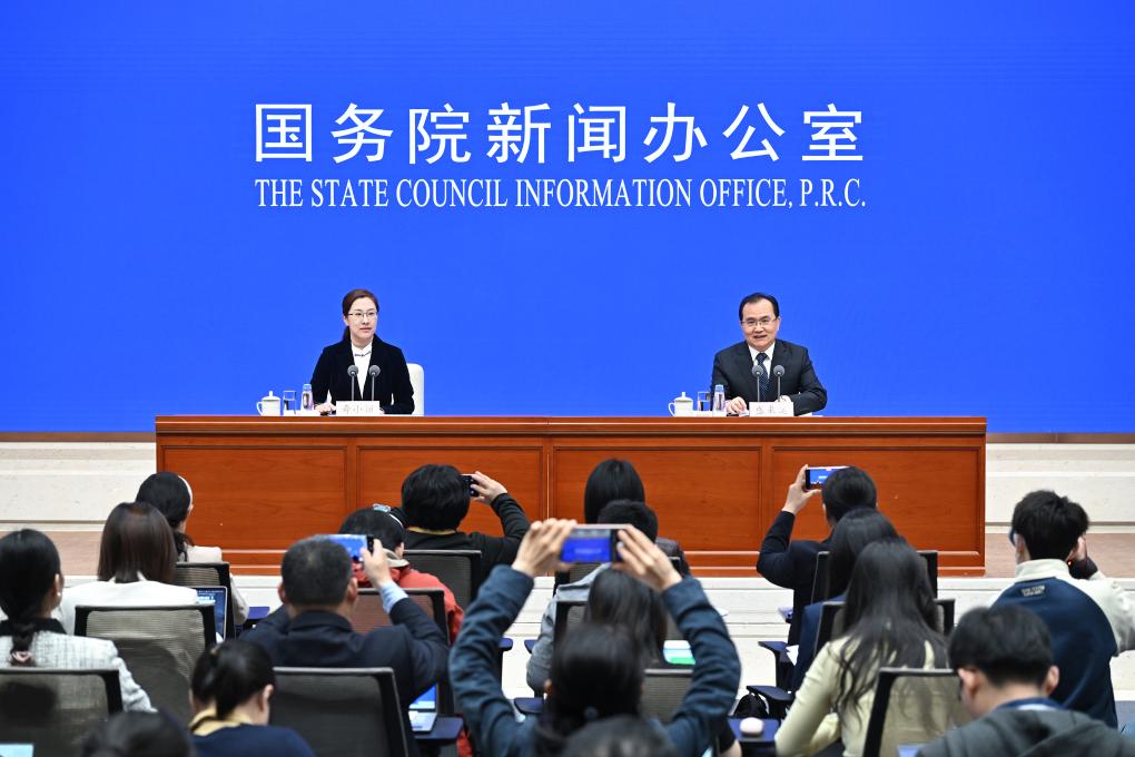 4月16日,國務(wù)院新聞辦公室在北京舉行新聞發(fā)布會,國家統(tǒng)計局副局長盛來運介紹2024年一季度國民經(jīng)濟運行情況,并答記者問。新華社記者 李鑫 攝