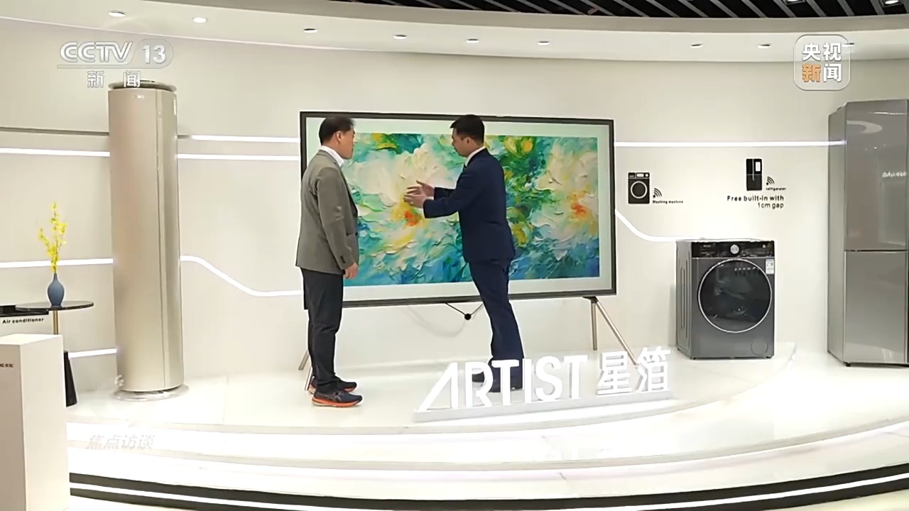 為了實(shí)現(xiàn)國(guó)際化戰(zhàn)略,長(zhǎng)虹在距離廣州一小時(shí)車程的中山市專門建立了一個(gè)出口基地,用前店后廠的模式加快向海外出口。一走進(jìn)展廳,記者首先就被一款115寸的巨幅電視吸引。它不僅大,而且聰明,內(nèi)置了人工智能大模型,記者體驗(yàn)了一下它的AI繪畫功能。