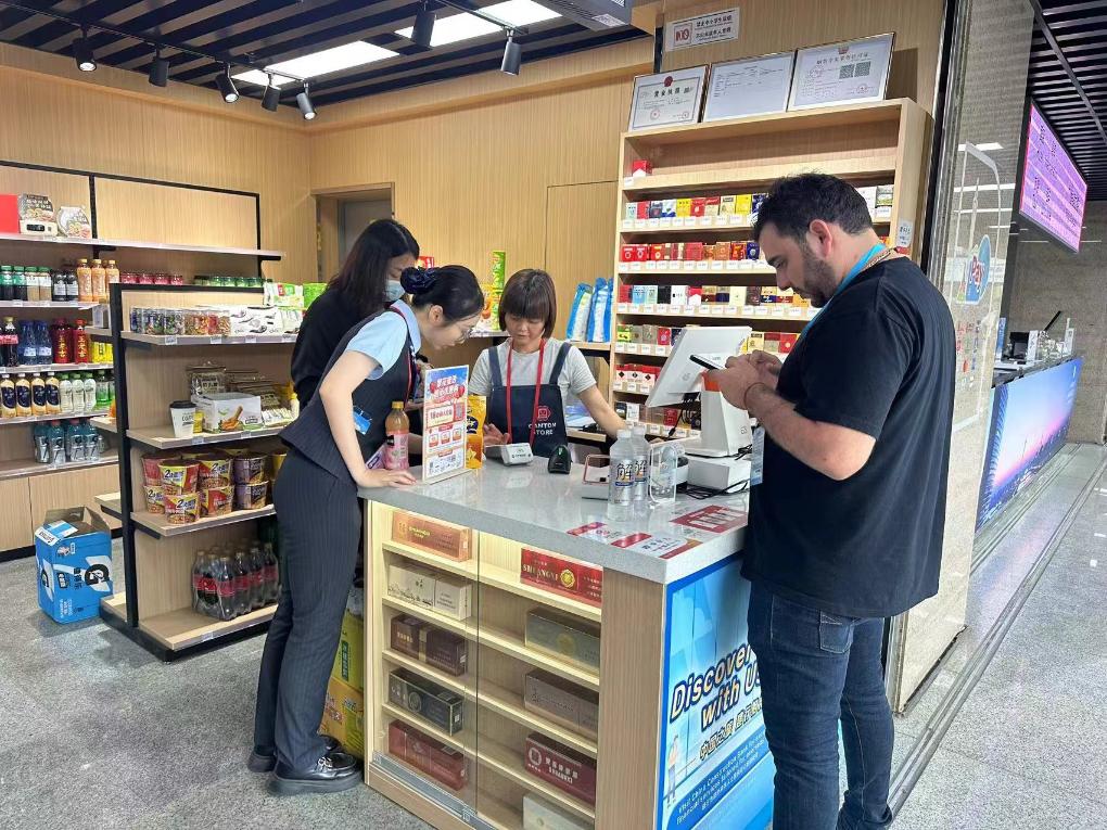 場館外,支付便利化措施早已全方位鋪開。從入境廣州開始,白云國際機(jī)場的醒目位置設(shè)有境外來賓支付服務(wù)咨詢臺,多語種宣傳相關(guān)政策,現(xiàn)場指引入境人員開通電子支付?!拔覀円龑?dǎo)商鋪支持使用帶有Visa、Master、美國運(yùn)通等標(biāo)識的國際標(biāo)準(zhǔn)化信用卡,機(jī)場商鋪外卡POS機(jī)做到至少‘一鋪一臺’?!睆V州市商務(wù)局相關(guān)負(fù)責(zé)人介紹。