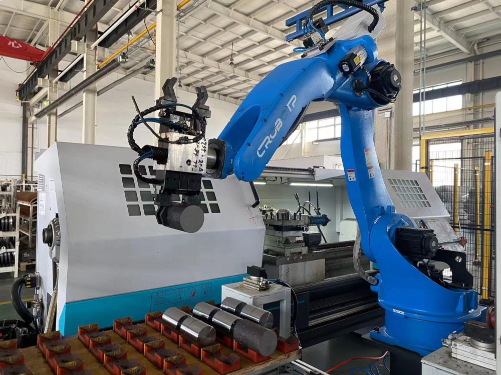 在奧瑞(天津)工業(yè)集團(tuán)股份有限公司,配重軸自動(dòng)加工設(shè)備正在抓取零部件。新華社記者 尹思源 攝