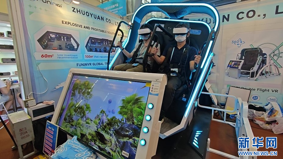 采購(gòu)商體驗(yàn)VR娛樂(lè)設(shè)備。新華網(wǎng)伍嘉煒 攝