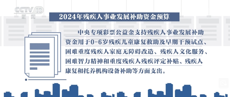 財政部4月26日下達了2024年殘疾人事業(yè)發(fā)展補助資金預算,包括,一般公共預算資金和中央專項彩票公益金支持殘疾人事業(yè)發(fā)展補助資金。
