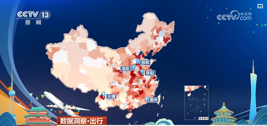 代表旅客凈流入的紅色占據(jù)了絕大多數(shù),達(dá)到城市總數(shù)的八成,甚至比4月30日還高了一成。在這些城市當(dāng)中,洛陽(yáng)、潮州、大理、阜陽(yáng)、邯鄲等城市成為旅客凈流入量較大的目的地,這意味著在假期第一天,有更多人從中心城市前往了中小城市。