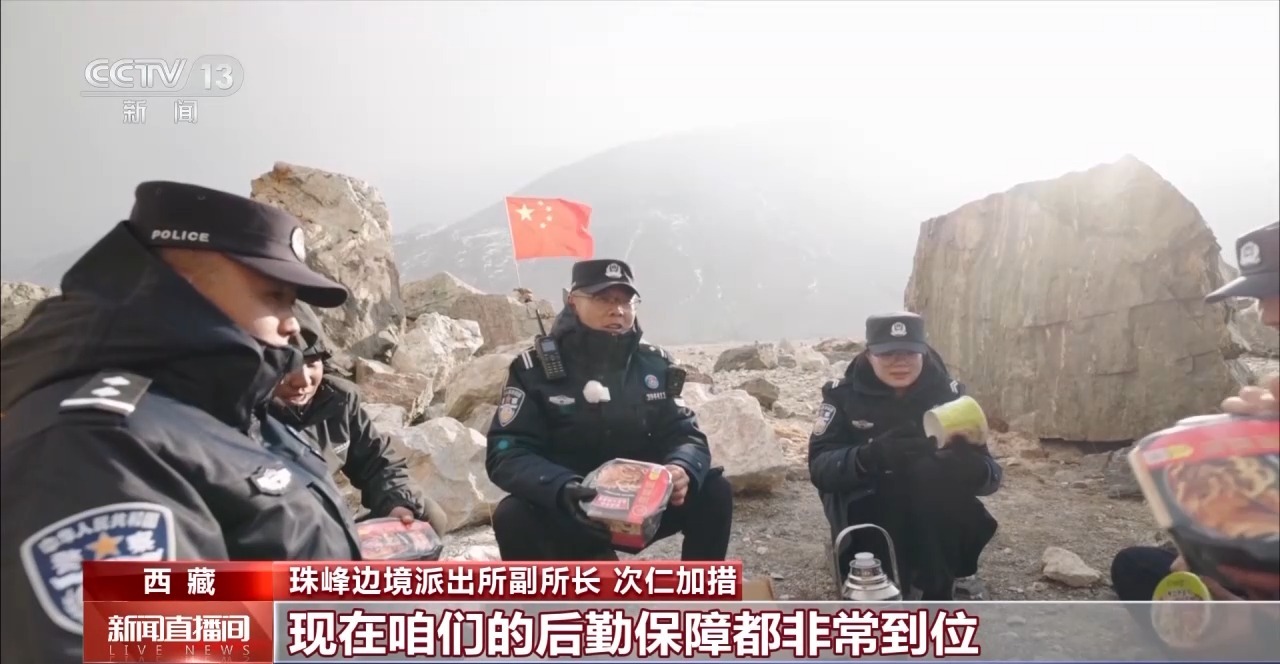 珠峰邊境派出所副所長(zhǎng) 次仁加措:這里風(fēng)是挺大的。但咱們有“法寶”,就是高原上的火鍋。現(xiàn)在后勤保障非常到位,在野外哪個(gè)地方,吃頓熱乎飯已經(jīng)不是難事了。