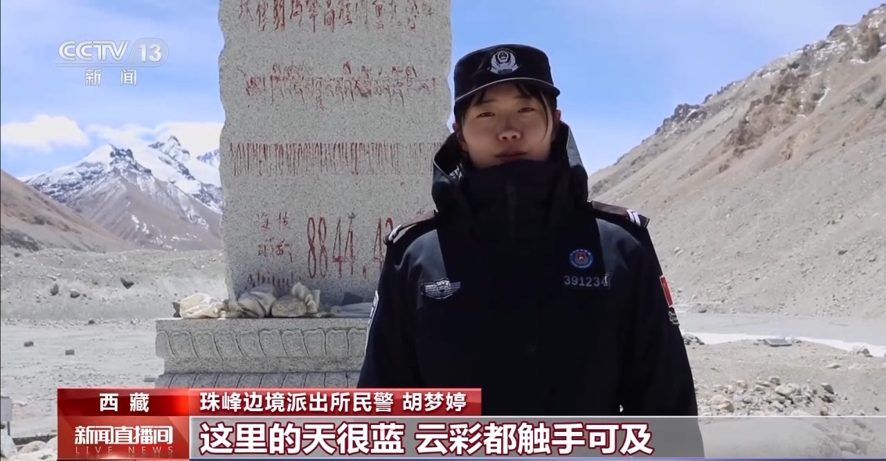 珠峰邊境派出所民警 胡夢(mèng)婷:這里的天很藍(lán),云彩都觸手可及。珠穆朗瑪峰,世界最高峰,對(duì)于我來(lái)說不再是課本上那遙不可及的存在,而是我已經(jīng)抵達(dá)并駐守的地方。