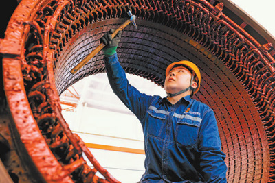 在包(頭)神(木)鐵路機(jī)務(wù)分公司東勝檢修設(shè)備車(chē)間,青年職工正對(duì)機(jī)車(chē)主發(fā)電機(jī)部件進(jìn)行質(zhì)量檢查。 張 棖 李尚昆攝影報(bào)道