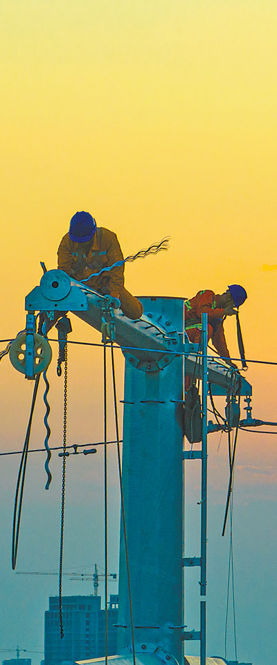 山東省聊城市電力部門(mén)工作人員正對(duì)線路進(jìn)行檢修。 謝 軍攝(人民視覺(jué))