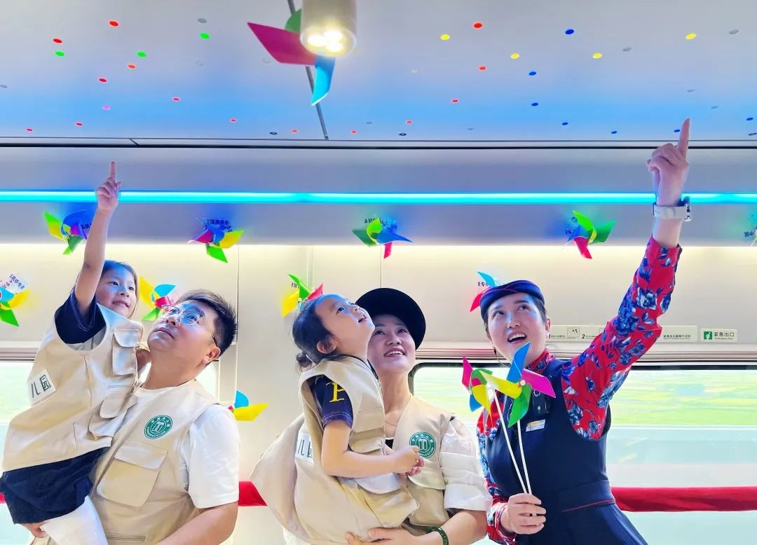 蘭州局集團公司在G1876次列車上舉辦“樂在旅途 即刻出發(fā)”主題秀,用錦簇花團裝飾列車,乘務(wù)員載歌載舞與旅客熱情互動,豐富旅客假期出行體驗。