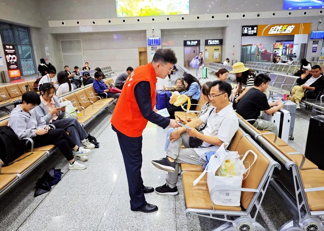 上海局集團公司杭州東、杭州、杭州南、杭州西站每日安排120名志愿者提供引導(dǎo)和問詢解答服務(wù),針對客流集中的重點車次和時段,采取適當(dāng)提前檢票、動態(tài)優(yōu)化候車區(qū)域旅客分布、增加安檢口雙人手檢力量等措施,服務(wù)旅客順暢出行。