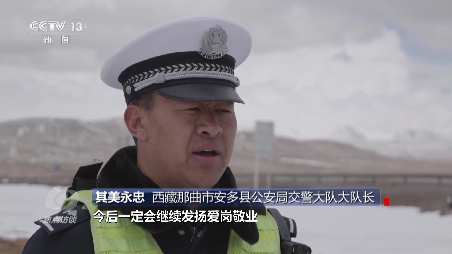 西藏那曲市安多縣公安局交警大隊大隊長 其美永忠:這個榮譽不是我個人的,是我們大隊的榮譽。今后一定會繼續(xù)發(fā)揚愛崗敬業(yè)、艱苦奮斗、甘于奉獻,把群眾服務(wù)好,把“天路”守護好。