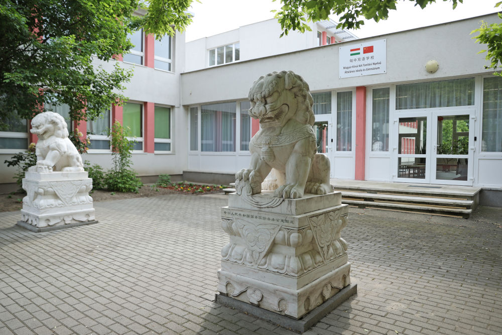 這是匈中雙語(yǔ)學(xué)校校門(mén)(2024年5月3日攝)。