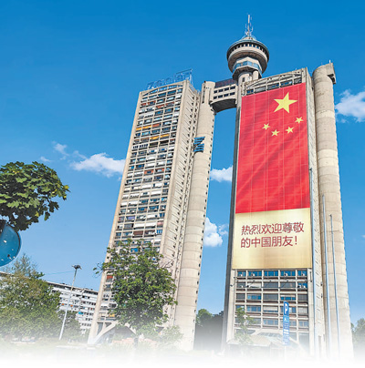 塞爾維亞首都貝爾格萊德市內(nèi)的建筑上懸掛起巨幅五星紅旗和中文標(biāo)語,歡迎習(xí)近平主席到訪。