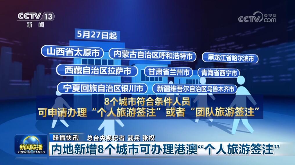 內(nèi)地新增8個城市可辦理港澳“個人旅游簽注”