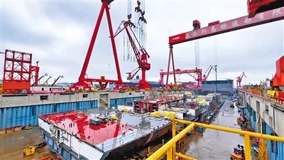 圖為第二艘國產大型郵輪搭載總裝現(xiàn)場。鄔迪 攝