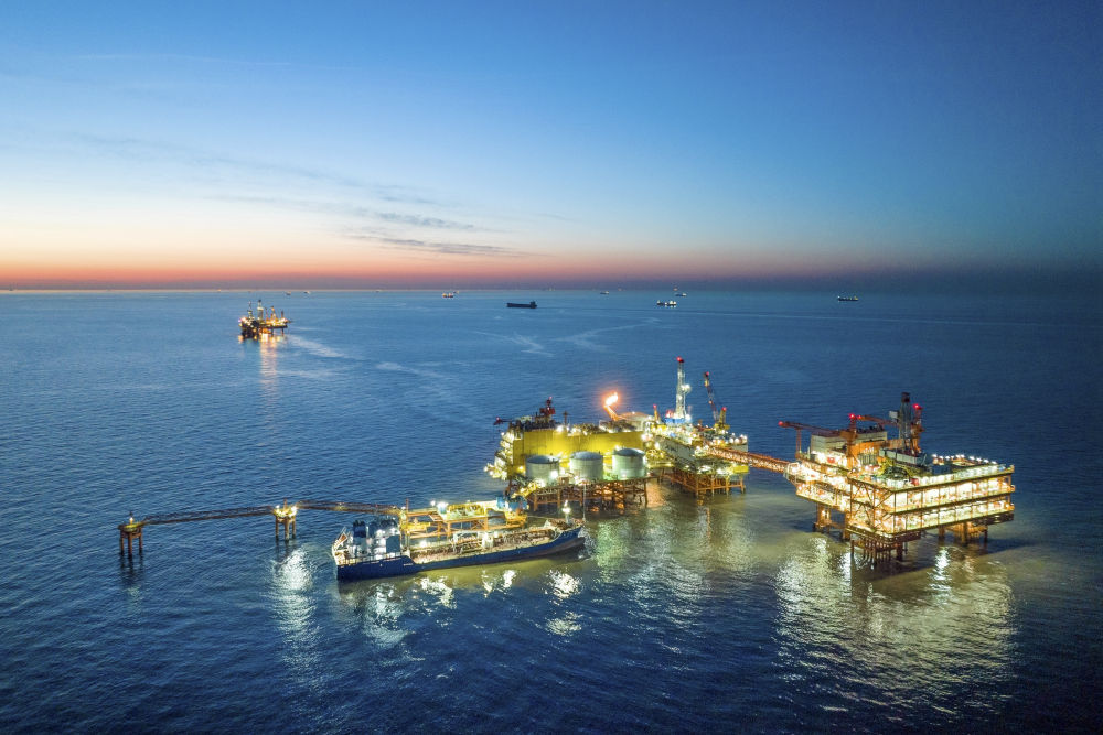 這是2024年1月25日拍攝的埕北油田全景(無人機照片)。當(dāng)日,位于渤海灣西南部的埕北油田油氣處理與岸電設(shè)備共建平臺——CEPC(中心平臺)正式投產(chǎn),該平臺可使油田接入來自陸地的綠色電力,減少海上“自發(fā)電”帶來的天然氣和原油消耗。新華社發(fā)(杜鵬輝攝)