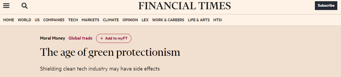 《金融時(shí)報(bào)》網(wǎng)站17日刊文稱(chēng),美國(guó)的“綠色”保護(hù)主義措施將不可避免地?cái)_亂貿(mào)易,不利于美國(guó)國(guó)內(nèi)制造商提高產(chǎn)能。對(duì)于應(yīng)對(duì)氣候變化而言,此舉或阻礙全球能源綠色轉(zhuǎn)型。