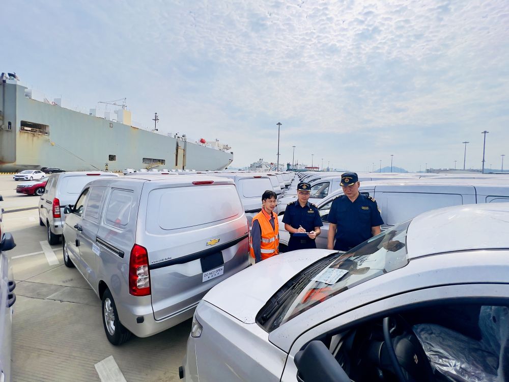 廣州海關(guān)所屬南沙海關(guān)關(guān)員對(duì)出口汽車進(jìn)行監(jiān)管。(受訪者供圖)