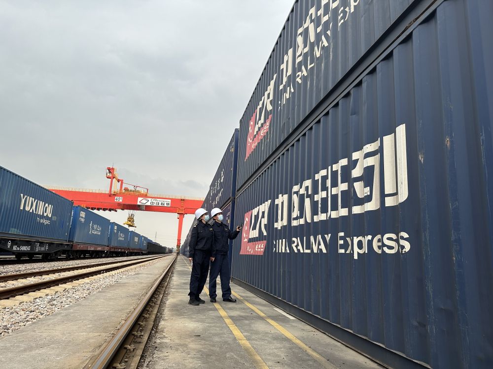 廣州海關(guān)所屬廣州車站海關(guān)關(guān)員對(duì)中歐班列出口貨物進(jìn)行監(jiān)管。(受訪者供圖)