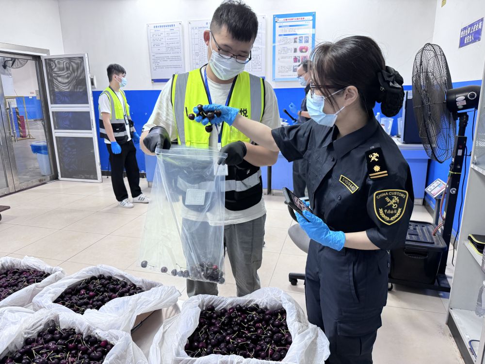 廣州白云機(jī)場海關(guān)關(guān)員對(duì)新產(chǎn)季進(jìn)口車?yán)遄舆M(jìn)行監(jiān)管。(受訪者供圖)