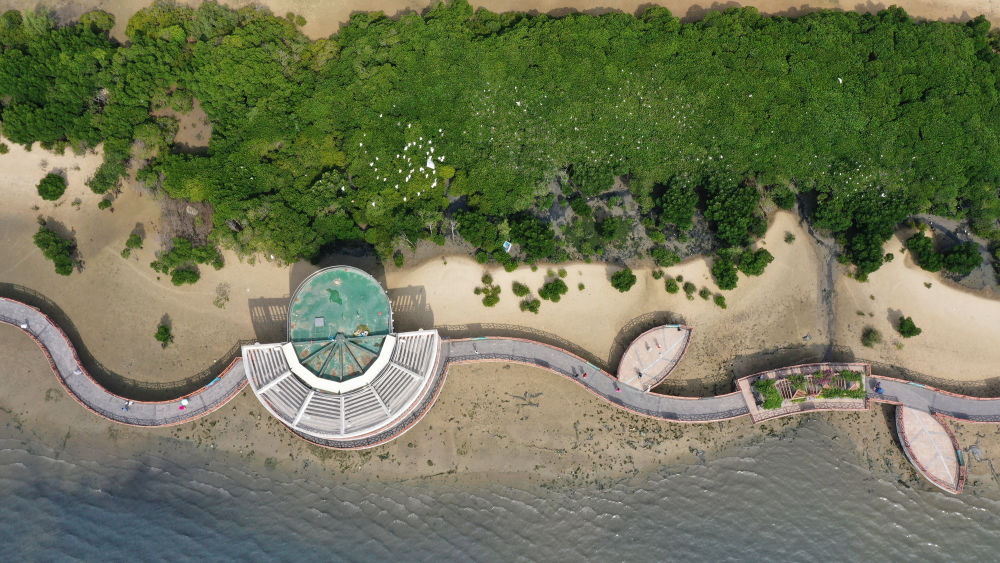 俯瞰廣東湛江市區(qū)海邊的紅樹林(2023年5月25日攝,無人機照片)。