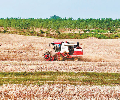 一片金黃的麥田里,撥禾輪轉(zhuǎn)動,麥芒飛揚,麥粒傾瀉而下……就在23日,蔡華從早忙到晚,沒敢停歇:“預(yù)報有雨,我得趕緊把客戶家的80多畝地收完。”天全黑下來,他才把收割機停進車棚,麥香味瞬間涌進小院。累了一整天,剛吃完飯,蔡華又和妻子張秀蘭盤算起出發(fā)的行頭:對講機、收款二維碼……