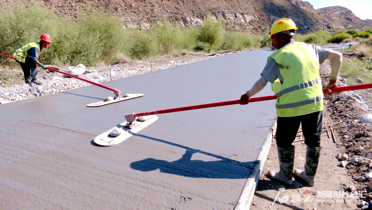 5月30日,拜城縣鐵熱克鎮(zhèn)農(nóng)村公路建設(shè)現(xiàn)場(chǎng),工人們把混凝土澆筑在路基上,抹平、凝固后,一段路就形成了。