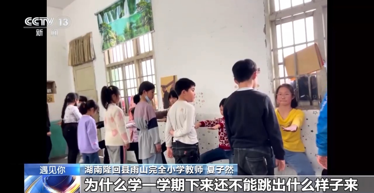 湖南隆回縣雨山完全小學老師 夏子然:跟他們跳舞,任何時候都是很難忘的回憶,每天都是限定版,我會用拍視頻的方式給記錄下來,在課后一個一個放大,去觀察他們的狀態(tài)和跳舞的動作,在第二節(jié)課,再做出相對應的調(diào)整。跳舞能夠讓他們放松,跳舞能夠讓他們變得開心,我最初的目的就達到了。