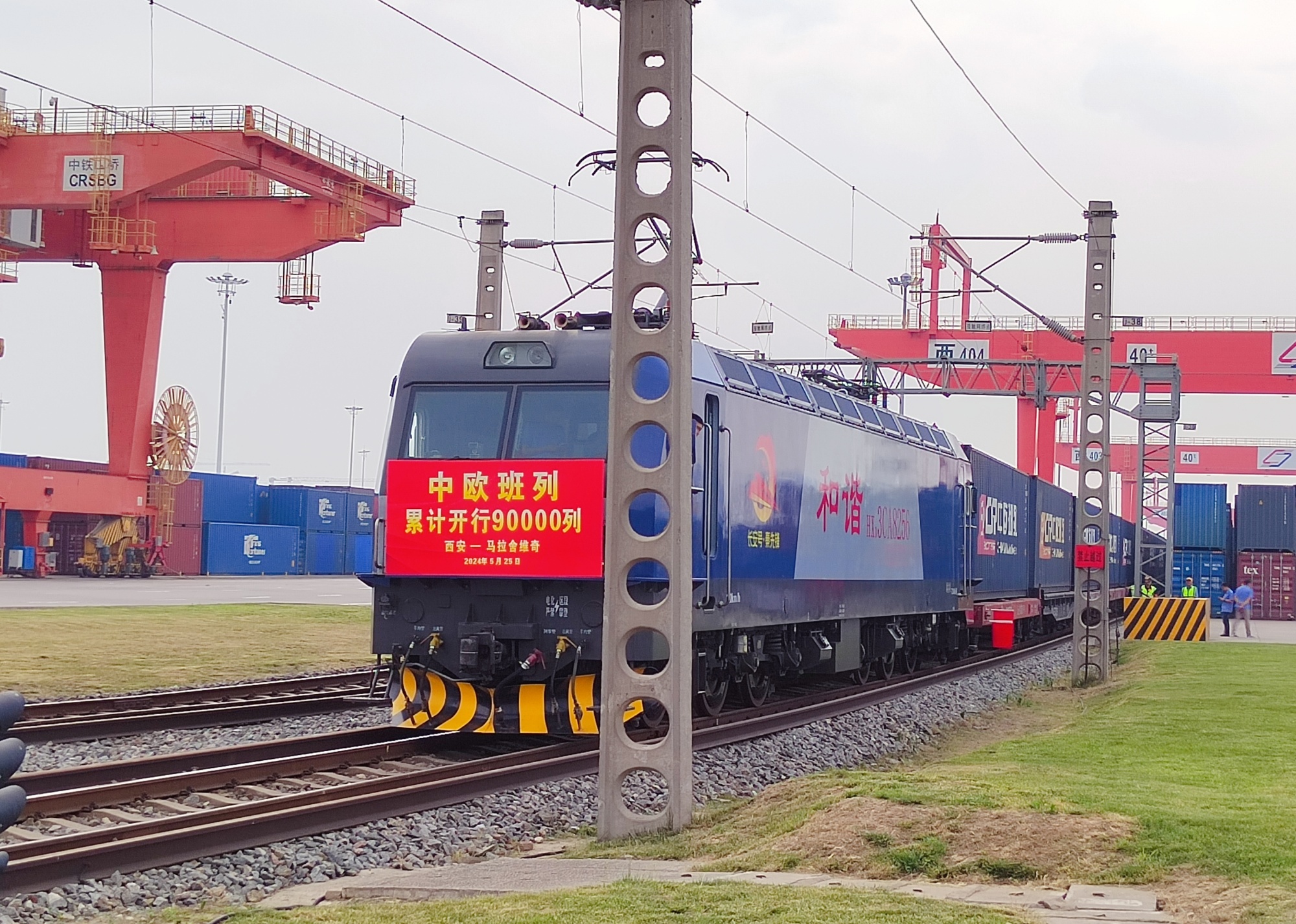 中歐班列,晝夜馳騁在歐亞大陸上,聯(lián)通東西,暢通貿(mào)易,是“絲綢之路經(jīng)濟(jì)帶”上的“鋼鐵駝隊(duì)”。今年5月24日,隨著X8157次中歐班列從西安國(guó)際港站發(fā)出,一路向西開去,中歐班列已經(jīng)累計(jì)開行9萬(wàn)列。從2013年開行80列到2016年開行1702列,再到2023年開行1.7萬(wàn)列,十年來(lái),中歐班列不斷跑出“加速度”,目前已通達(dá)歐洲25個(gè)國(guó)家223個(gè)城市,連接11個(gè)亞洲國(guó)家一百多個(gè)城市,服務(wù)網(wǎng)絡(luò)基本覆蓋歐亞全境,年運(yùn)輸貨值由2016年80億美元增長(zhǎng)到2023年的567億美元。