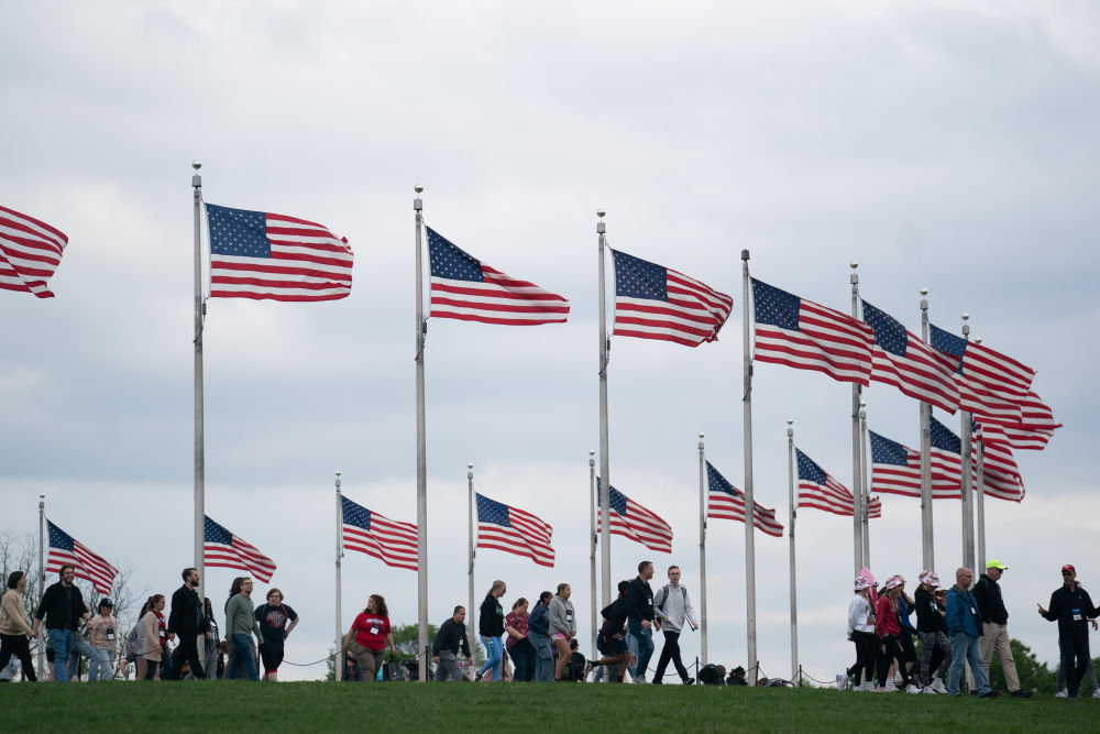 4月25日,游客在美國(guó)首都華盛頓的國(guó)家廣場(chǎng)游覽。新華社記者劉杰攝