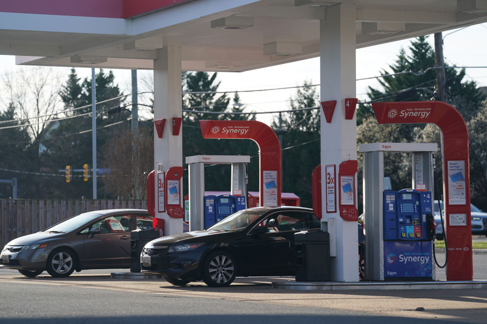 3月12日,車輛停在美國(guó)弗吉尼亞州維也納的一座加油站內(nèi)。新華社記者劉杰攝