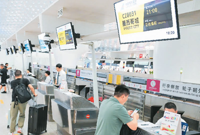 在廣東深圳寶安國際機(jī)場,搭乘深圳—墨西哥城直飛航線的乘客辦理值機(jī)。