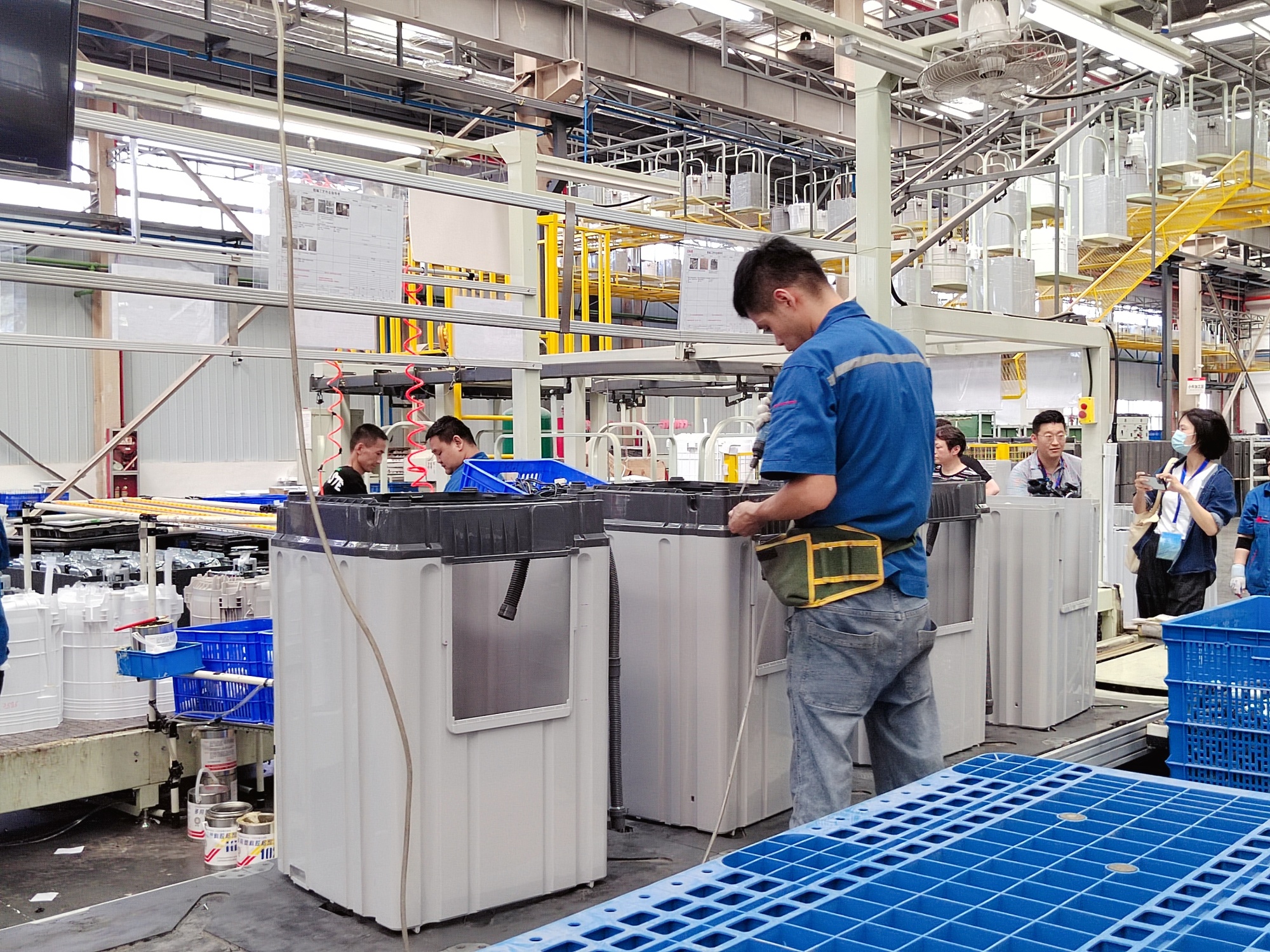 搭乘中歐班列出口的洗衣機(jī)(央廣網(wǎng)記者 陳銳海攝)