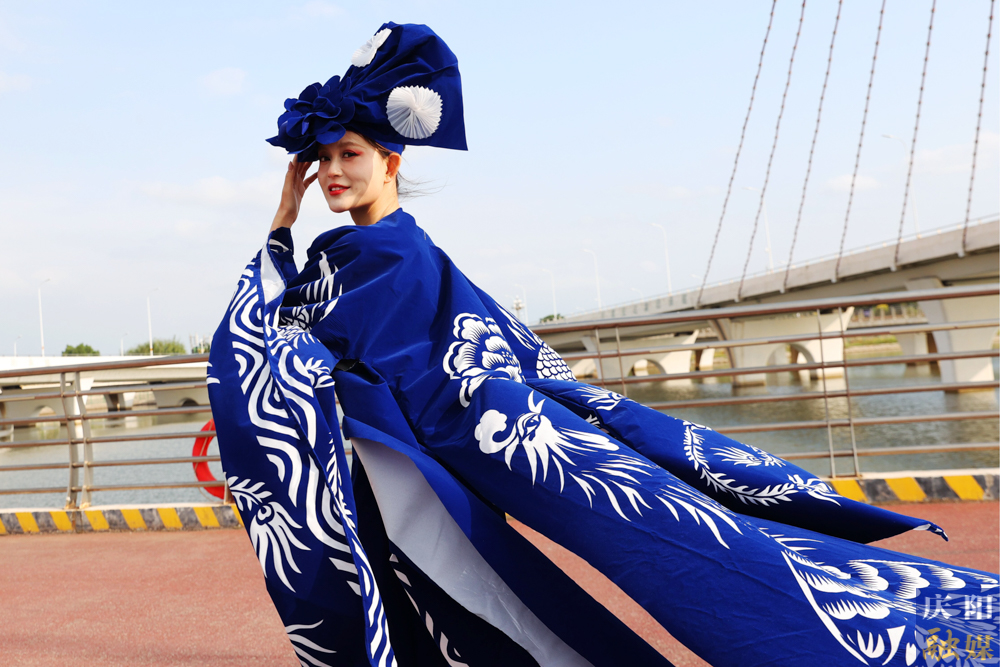 “剪云裳”青花瓷系列作品“鳳凰牡丹”服裝展示。