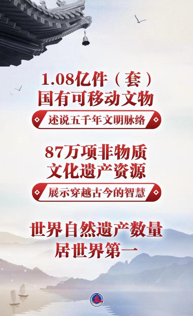 1.08億件(套)國有可移動文物述說五千年文明脈絡(luò),87萬項非物質(zhì)文化遺產(chǎn)資源展示穿越古今的智慧,世界自然遺產(chǎn)數(shù)量居世界第一……文化和自然遺產(chǎn)濃縮著中華文明發(fā)展和自然演進(jìn)的珍貴成果。