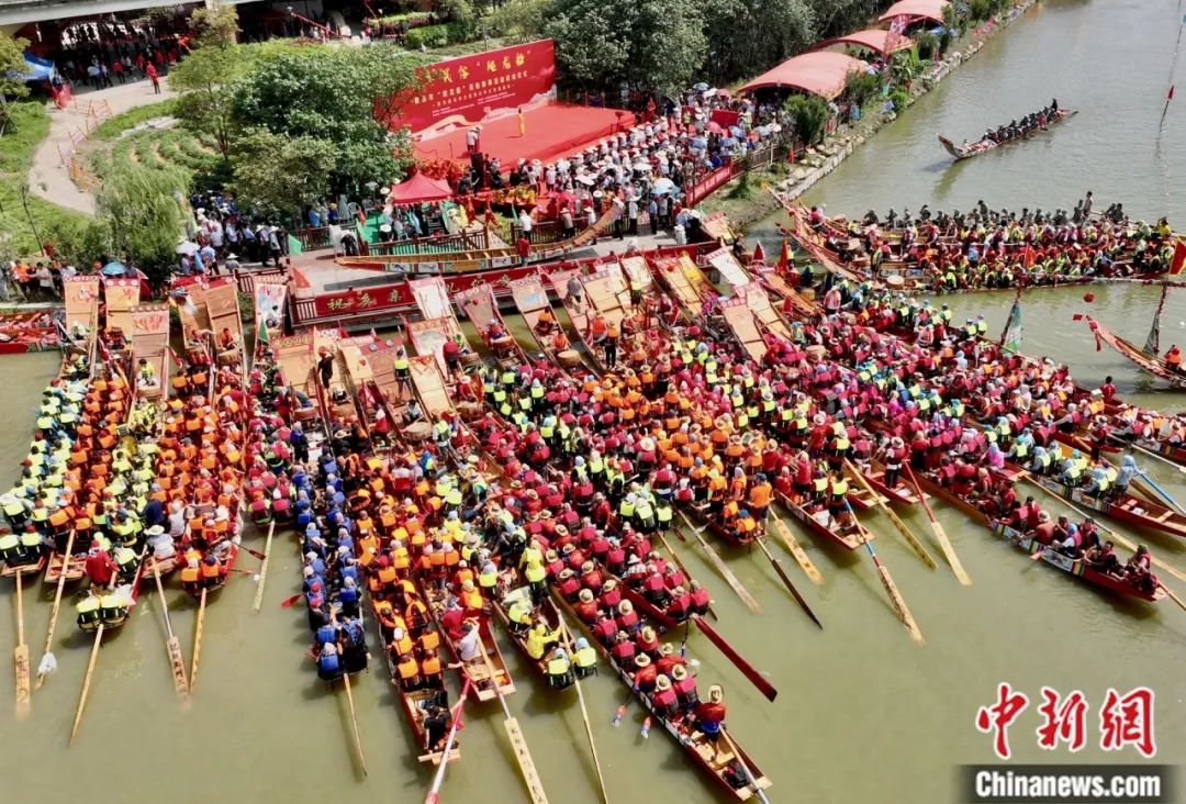 圖為2023年百艘龍舟齊聚黃石華江參與競渡盛會。中新社記者 王東明 攝